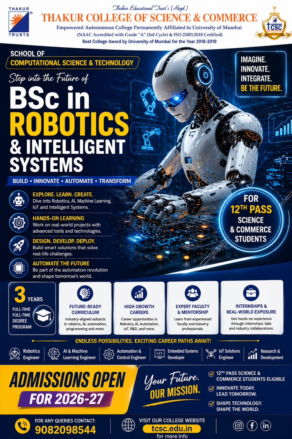 "We, at the Thakur College of Science and Commerce will strive to achieve excellence through quality education by providing the right academic ambience for overall development of all the students so they progress upwards."