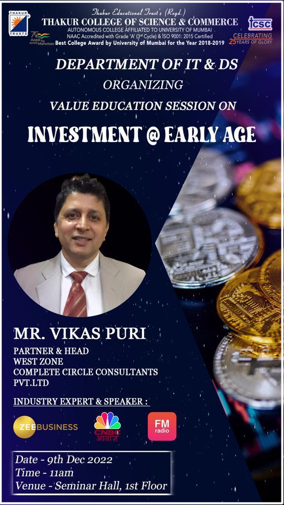 Value Education Session on Investment @ Early Age by Department of IT and DS